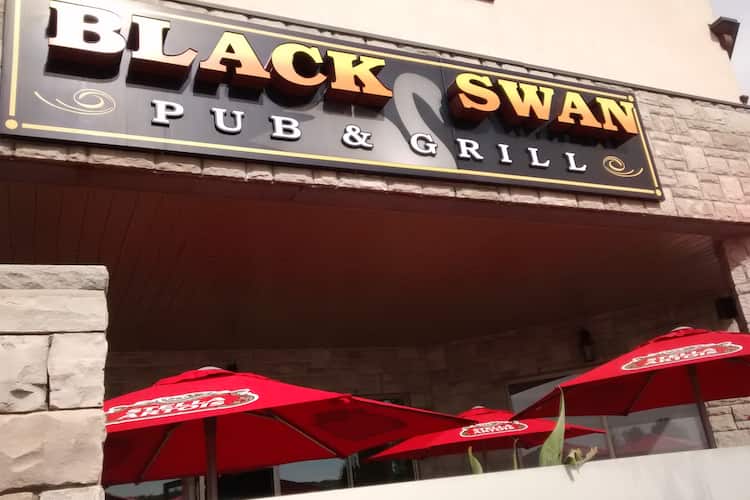 Tobacco Store Wine Beer Spirits Store Restaurant Supply Store Cafe Restaurant Travel Company Event Planner Show all 7 About Us. The Black Swan Pub and Grill is rated 32 stars by 4 OpenTable diners. Prepare to end your day with a toast to the sky as you surround yourself with great friends and family on the pubs west-facing outdoor patio.
